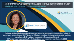 Nonprofit and not-for-profit organizations need all the assistance and guidance they can get these days, as the rate of change is outpaced only by the seemingly continuous onslaught of new, unprecedented challenges. That’s why we are so pleased to discover the NonProfit Resource Hub. It’s an efficient and effective resource for learning how to solve problems and connecting with the seasoned executives who come up with these solutions. Thank you to all involved in making this happen!